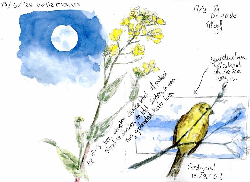 Zo'n dag dat de reptielen zich niet laten zien en de kikkers nog even wachten maar de knoppen in de struikjes dik zijn en her en der al barsten.