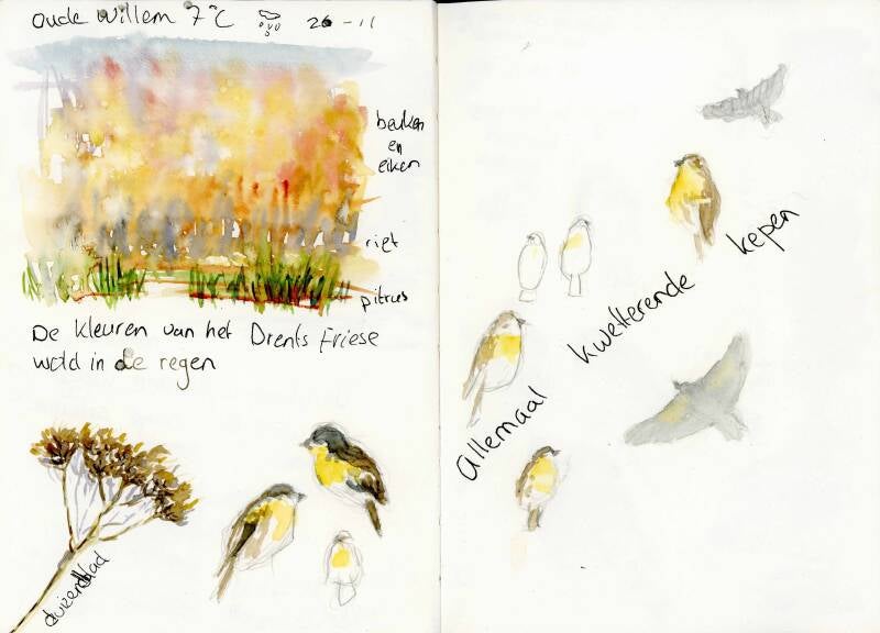 Ik neem je mee door de laatste pagina's van november uit mijn natuurdagboek. De paddenstoelen maken plaats voor vogels op de pagina's van mijn journal. Ik heb al een aantal leuke wintergasten gezien (vogels uit Scandinavië die in Nederland overwinteren). De winter is begonnen.