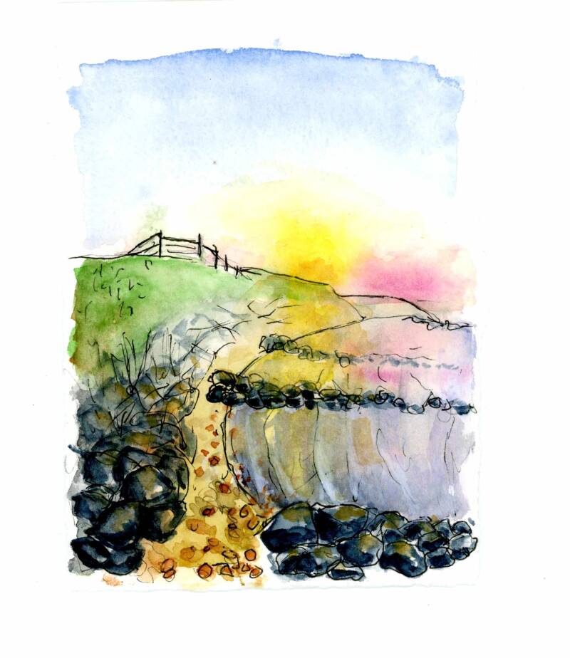 Een hele korte ochtendwandeling en een paar potloden mee, leveren een mooi moment van aandacht op voor het prachtige ochtendlicht.
